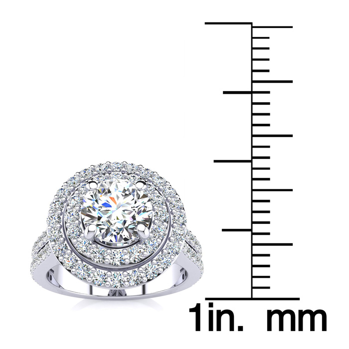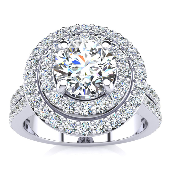 2 Carat Natural Double Halo Round Diamond Engagement Ring in 14K White Gold