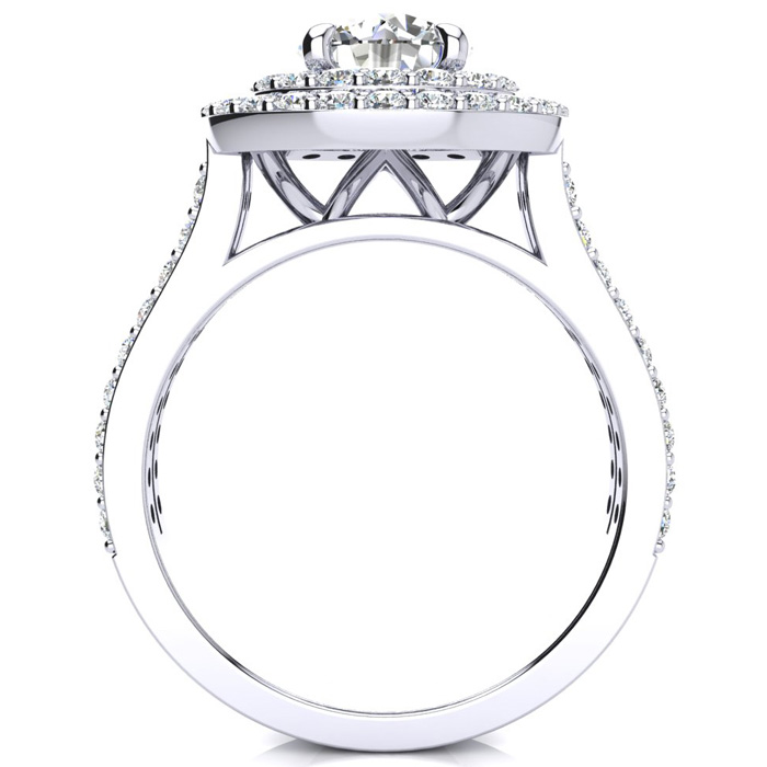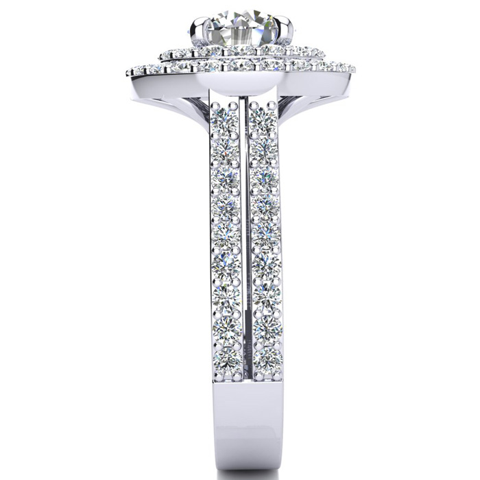 Huge looking wonderful 2 carat total diamond weight halo engagement ring that is just the most perfect ring. She will love this when you give it to her and you will love the savings. Why spend 2 months salary when you can spend so much less and get a big, beautiful and fantastic diamond engagement ring for so much less? This wedding ring features a 1.00 carat round brilliant near ideal cut clarity enhanced center diamond, surrounded in a halo of 76 accent diamonds. Diamond color is H-J and diamond clarity is I1-I2. Grades are expressed as averages.