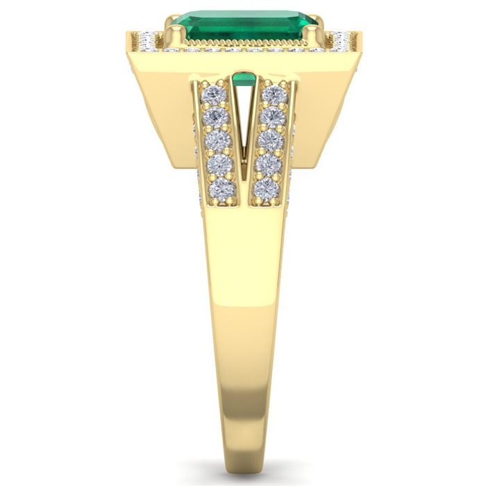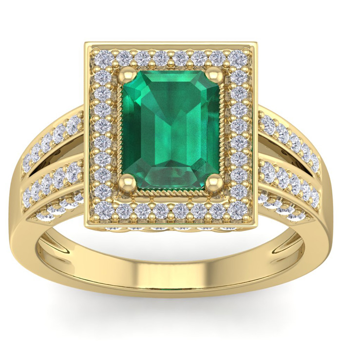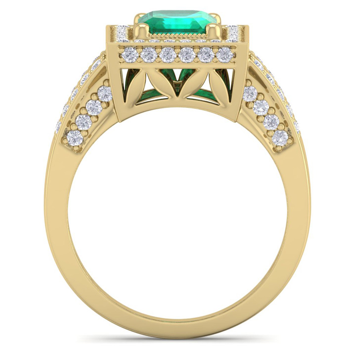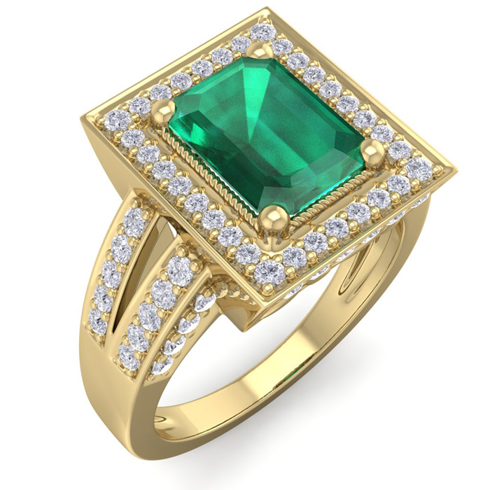 2 Carat Emerald and Halo Diamond Ring In 14 Karat Yellow Gold