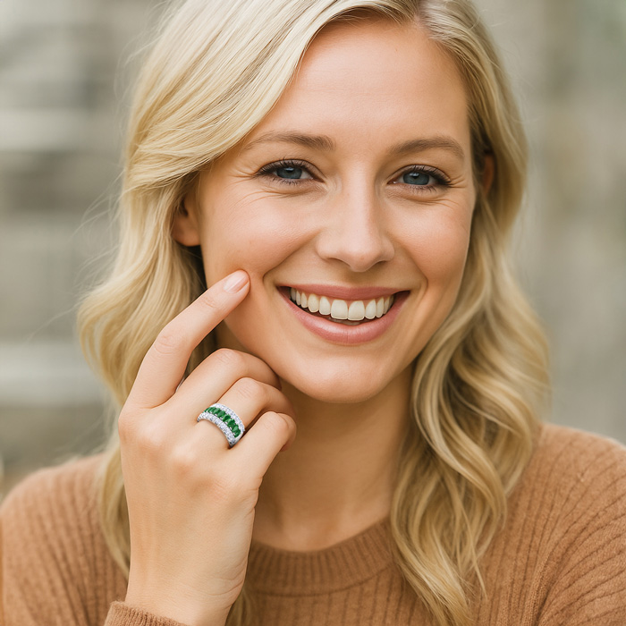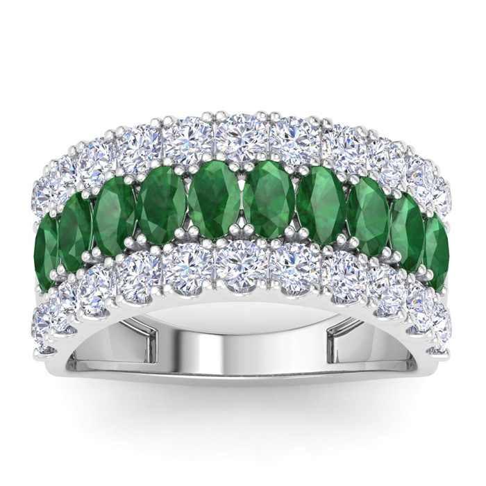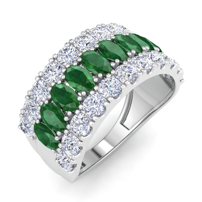 2 Carat Emerald and Lab Grown Diamond Band Ring In 14K White Gold