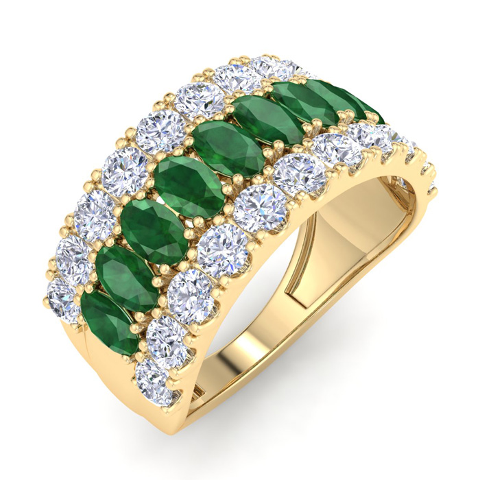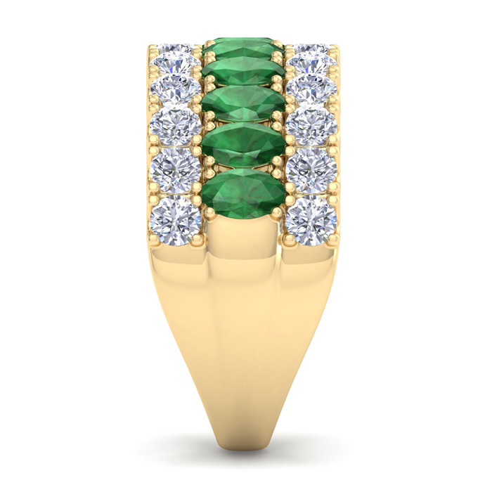 2 Carat Emerald and Lab Grown Diamond Band Ring In 14K Yellow Gold