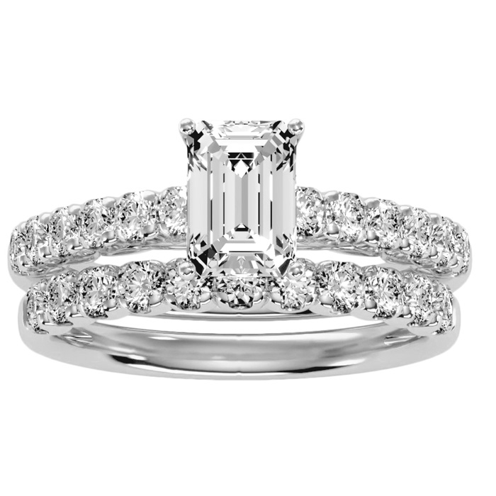 2 Carat Natural Emerald Cut Diamond Bridal Set In 14 Karat White Gold