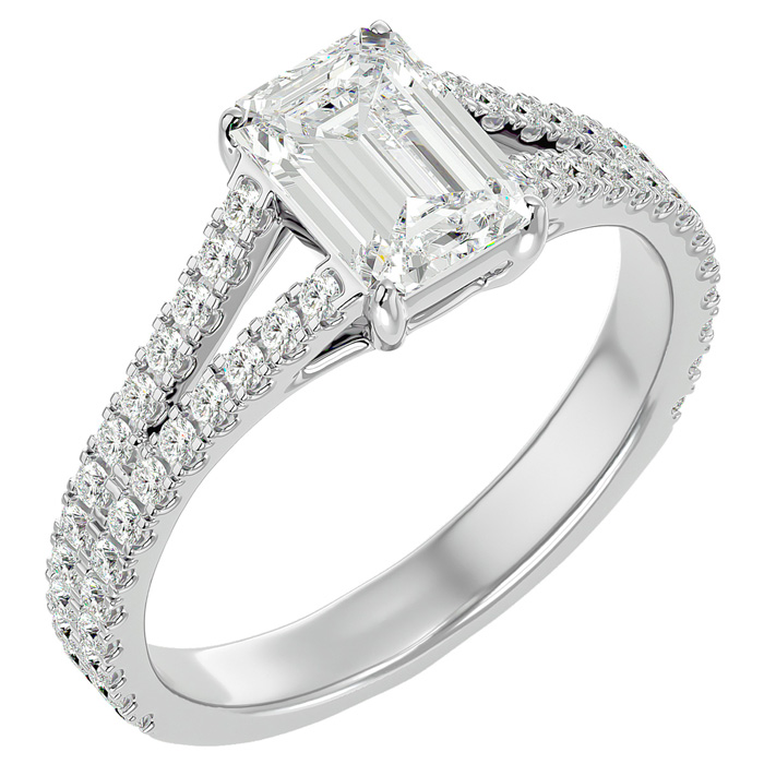 2 Carat Natural Emerald Cut Diamond Engagement Ring In 14 Karat White Gold