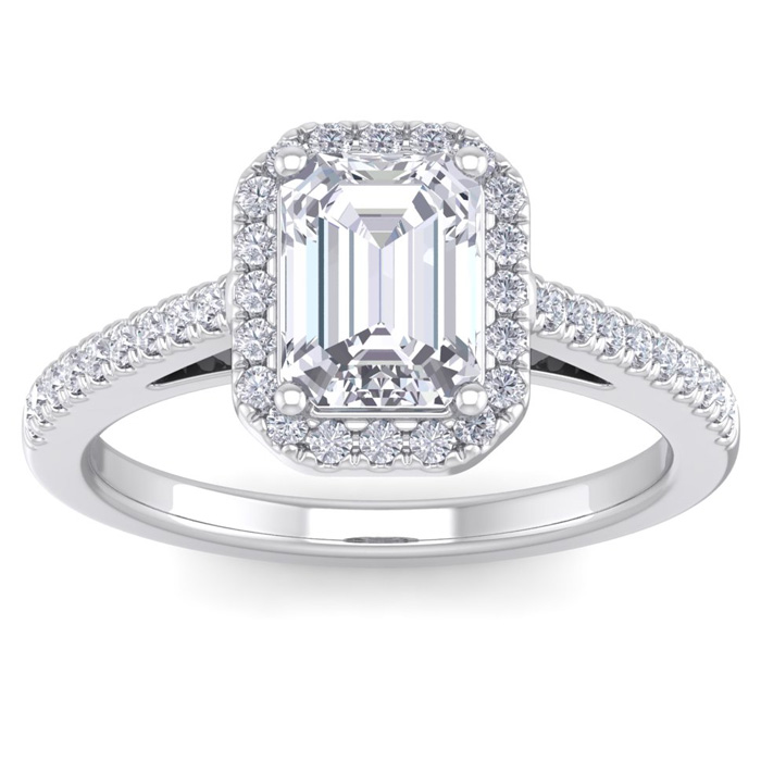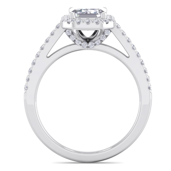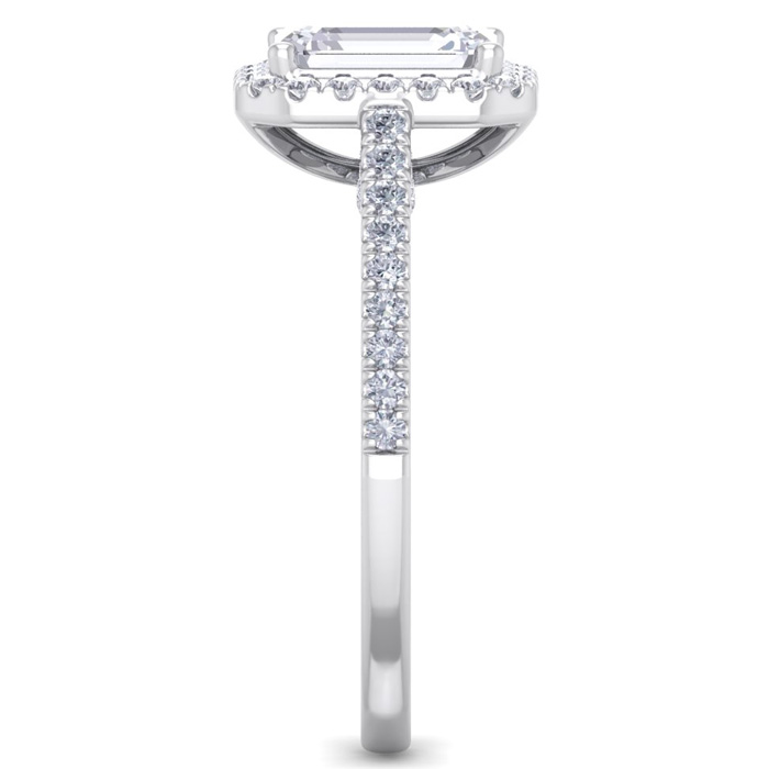2 Carat Natural Emerald Cut Halo Diamond Engagement Ring In 14K White Gold