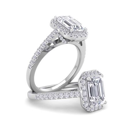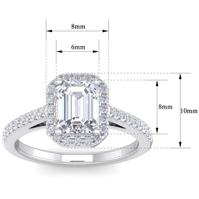 2 Carat Natural Emerald Cut Halo Diamond Engagement Ring In 14K White Gold