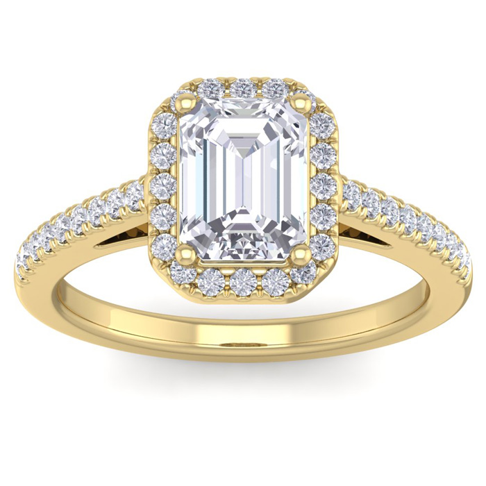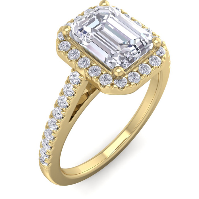 2 Carat Natural Emerald Cut Halo Diamond Engagement Ring In 14K Yellow Gold