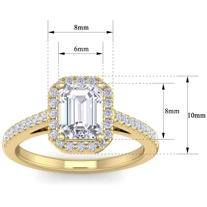 2 Carat Natural Emerald Cut Halo Diamond Engagement Ring In 14K Yellow Gold