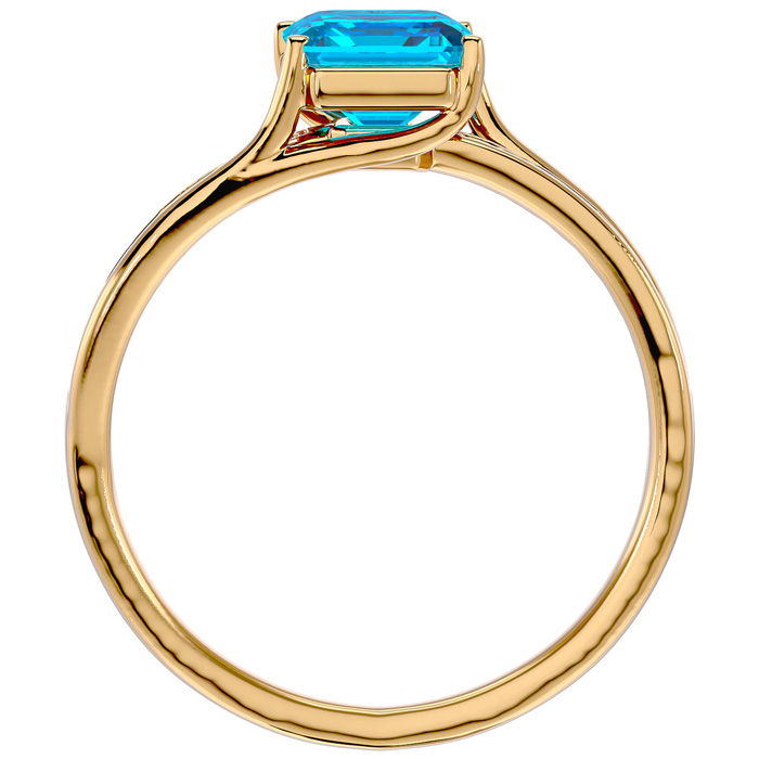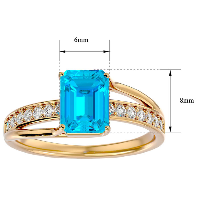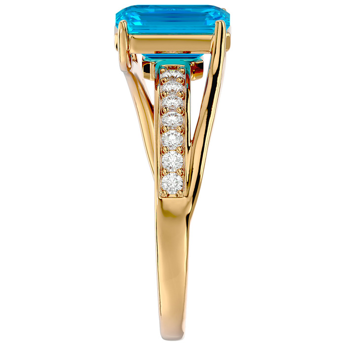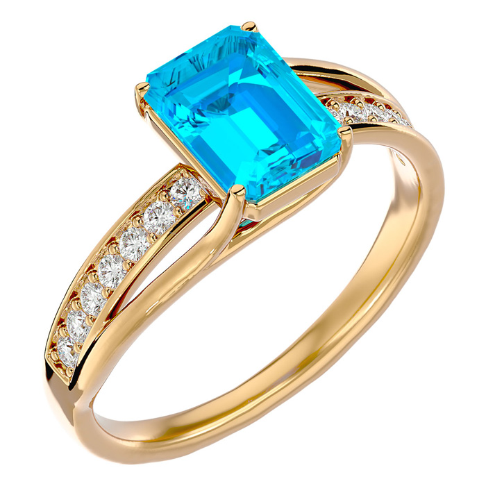 2 Carat Emerald Shape Blue Topaz and Diamond Ring In 14 Karat Yellow Gold