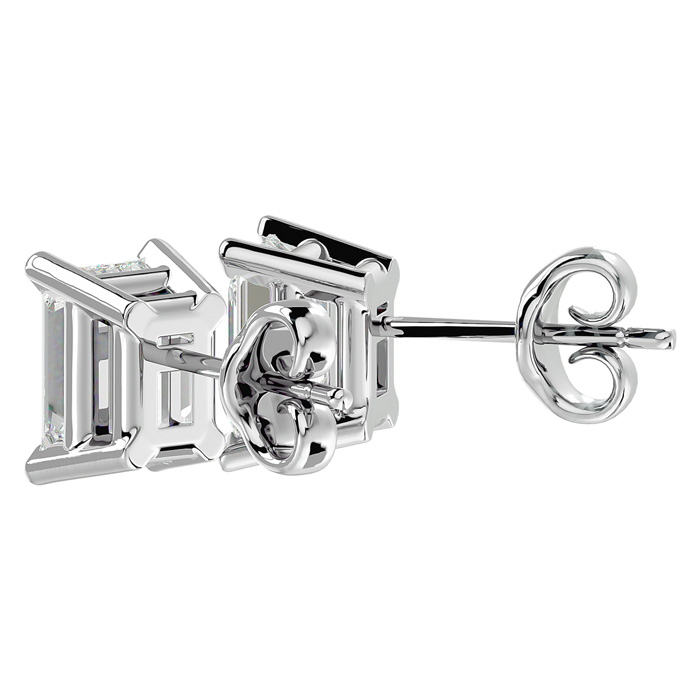 2 Carat Emerald Shape Moissanite Stud Earrings In 14 Karat White Gold