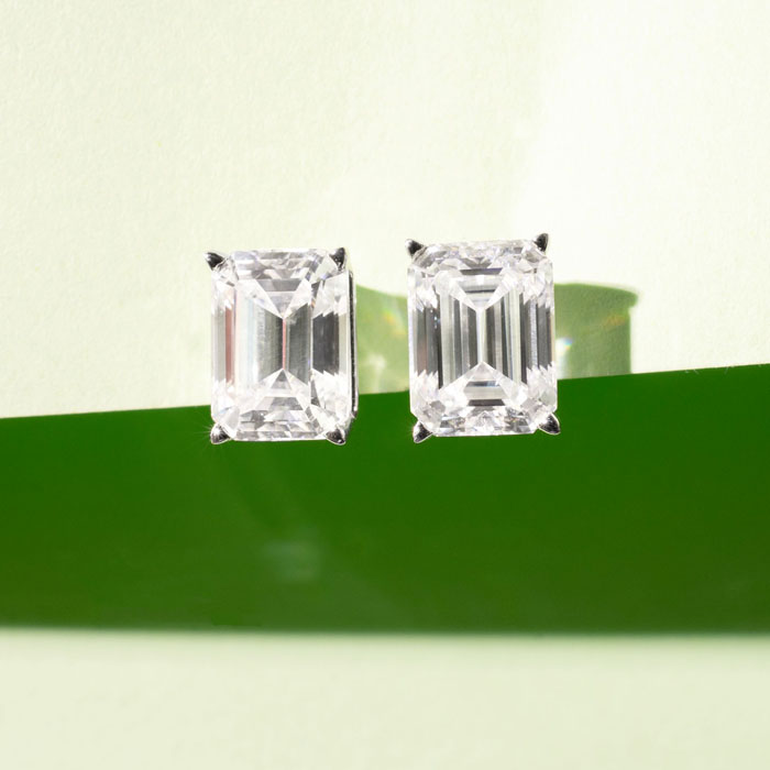 2 Carat Emerald Shape Moissanite Stud Earrings In Platinum