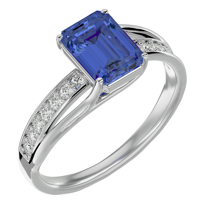 2 Carat Emerald Shape Tanzanite and Diamond Ring In 14 Karat White Gold