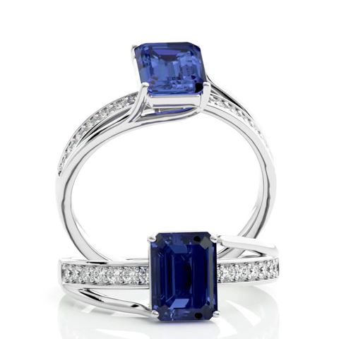 2 Carat Emerald Shape Tanzanite and Diamond Ring In 14 Karat White Gold