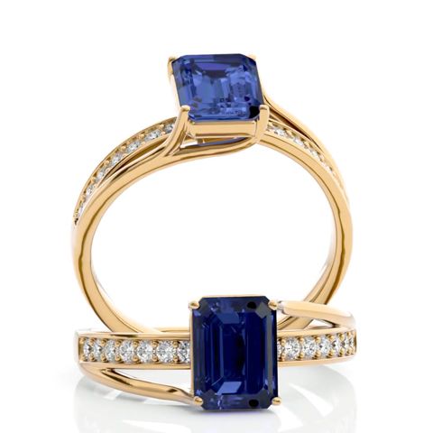2 Carat Emerald Shape Tanzanite and Diamond Ring In 14 Karat Yellow Gold