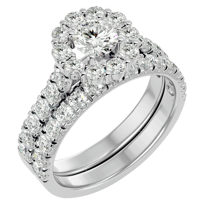 2 Carat Halo Diamond Bridal Set In 14 Karat White Gold