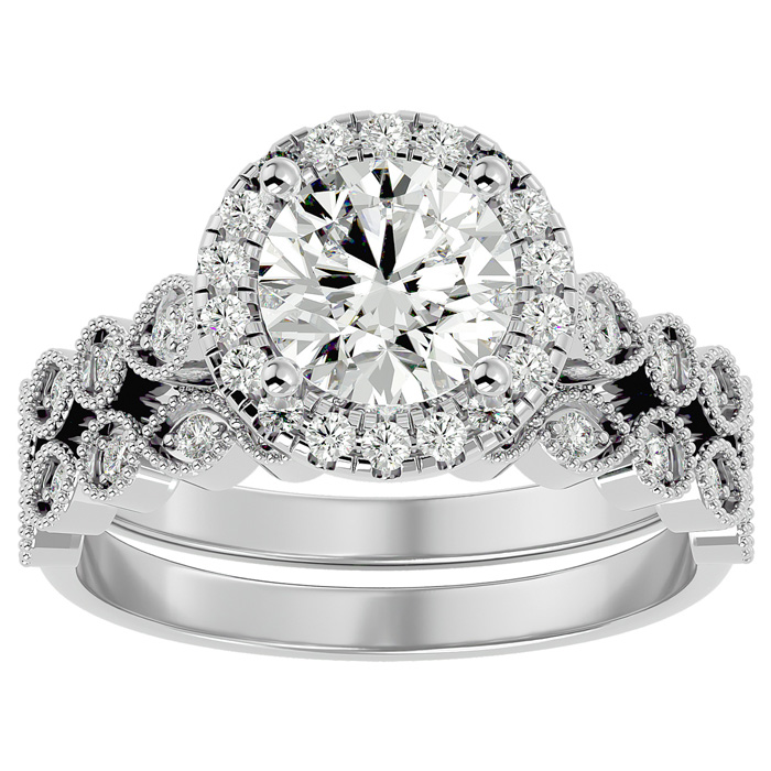2 Carat Halo Diamond Bridal Set In 14 Karat White Gold