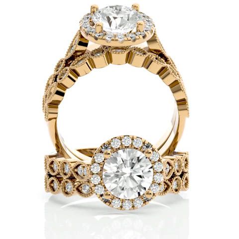 2 Carat Halo Diamond Bridal Set In 14 Karat Yellow Gold