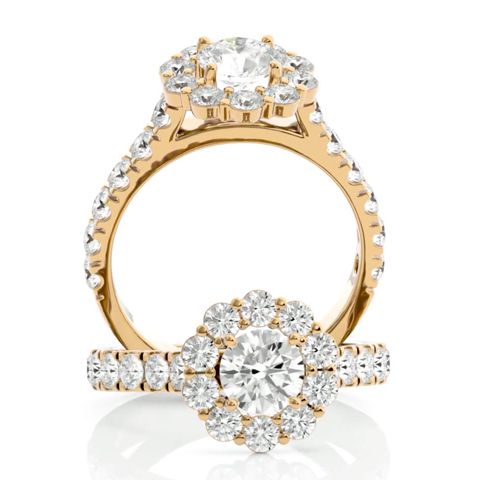 2 Carat Halo Diamond Engagement Ring In 14 Karat Yellow Gold. Amazing New Classic Beautiful Engagement Ring!