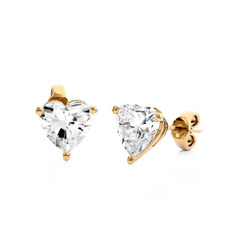 2 Carat Heart Shape Moissanite Stud Earrings In 14 Karat Yellow Gold