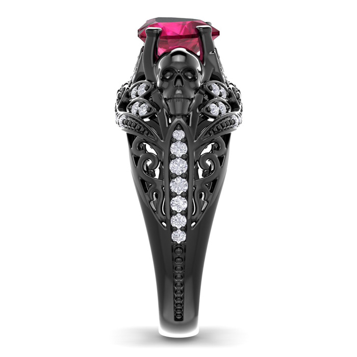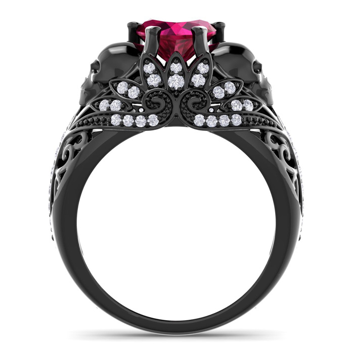 2 Carat Heart Shape Ruby and Diamond Ring With Skulls In Black Rhodium