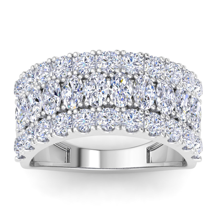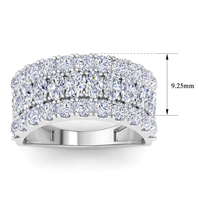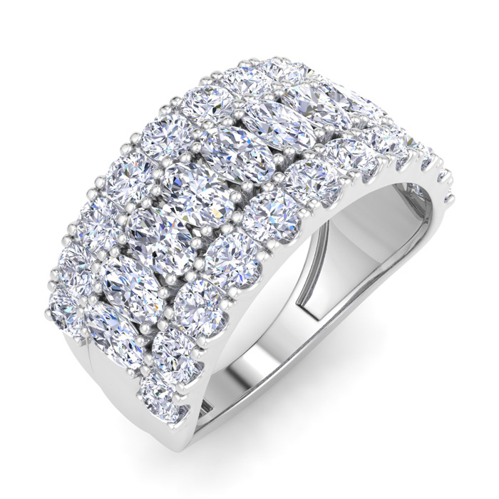 This lab grown diamond ring features 22 round shape lab grown diamonds and 10 oval shape lab grown diamonds totaling approximately 2 carats. Diamond color is G-H, diamond clarity is VS. This ring is in 14 karat white gold. This ring is 9mm wide.