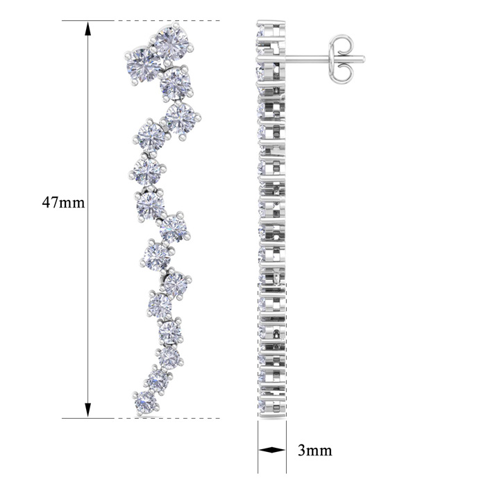 2 Carat Lab Grown Diamond Line Drop Earrings In 14 Karat White Gold, 2 Inches