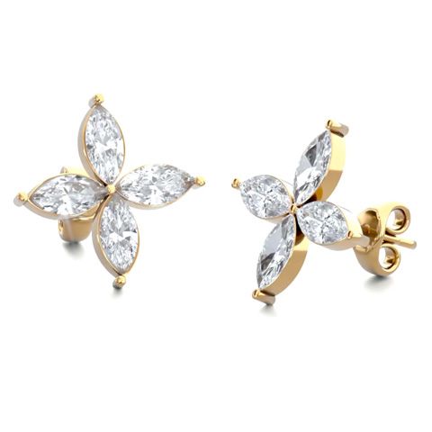 2 Carat Natural Marquise Shape Diamond Cluster Stud Earrings In 14 Karat Yellow Gold
