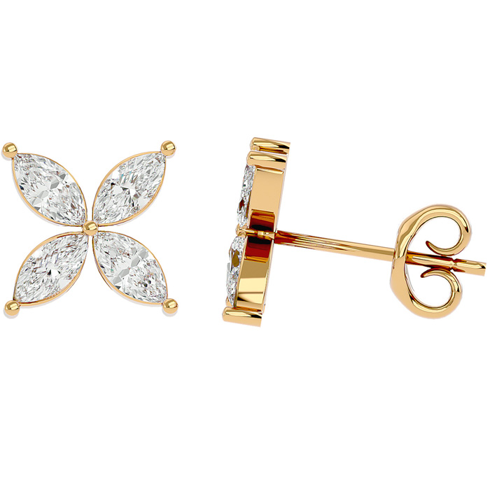 2 Carat Natural Marquise Shape Diamond Cluster Stud Earrings In 14 Karat Yellow Gold