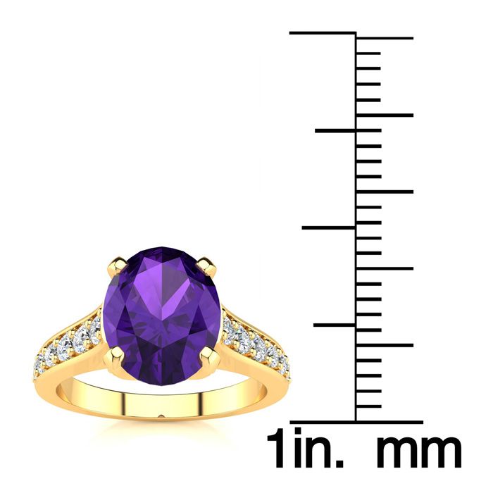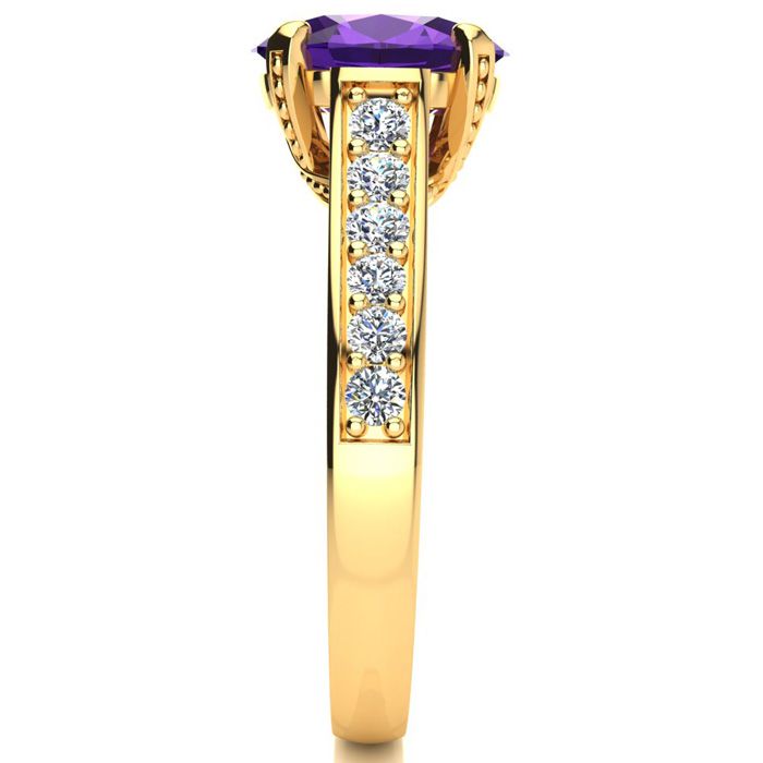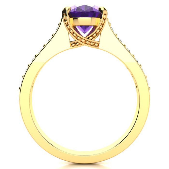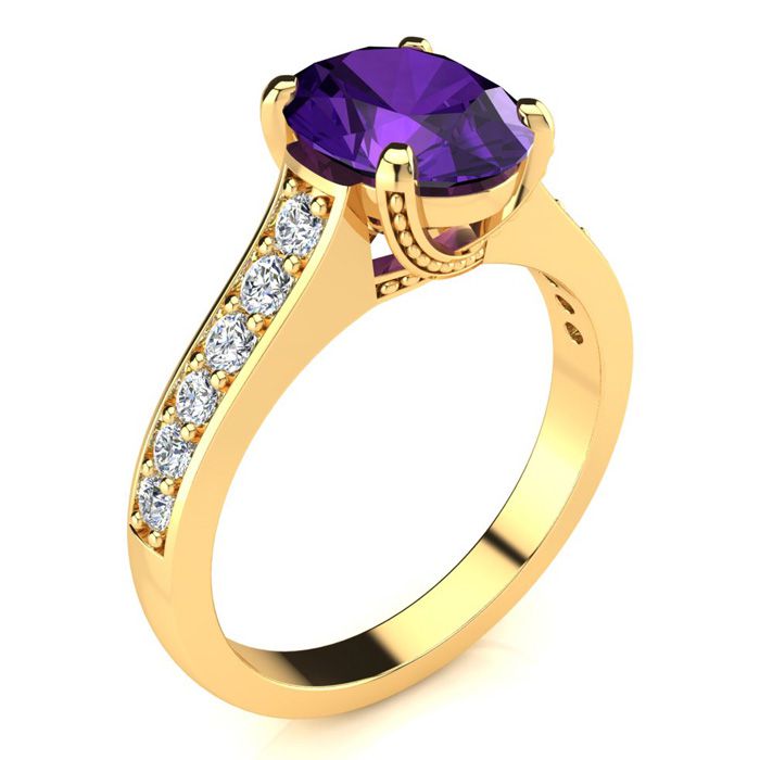 2 Carat Oval Shape Amethyst and Diamond Ring In 14 Karat Yellow Gold