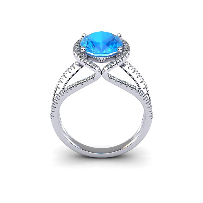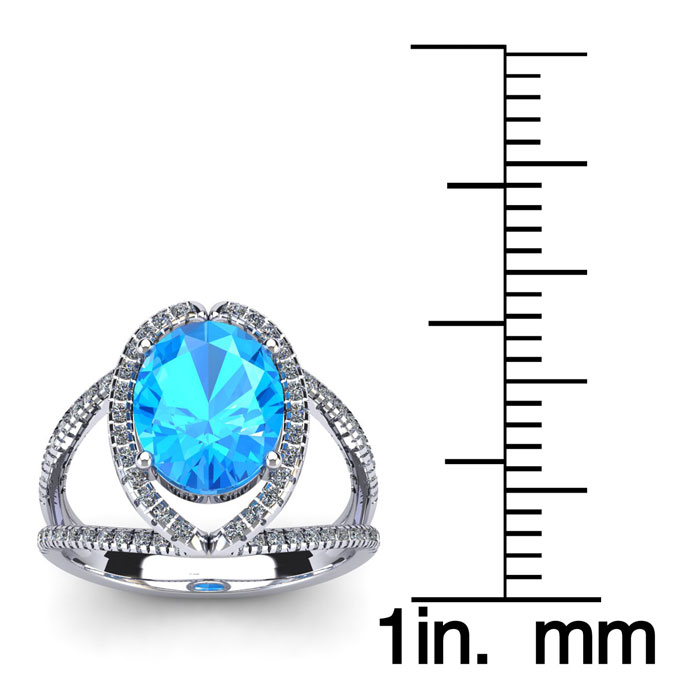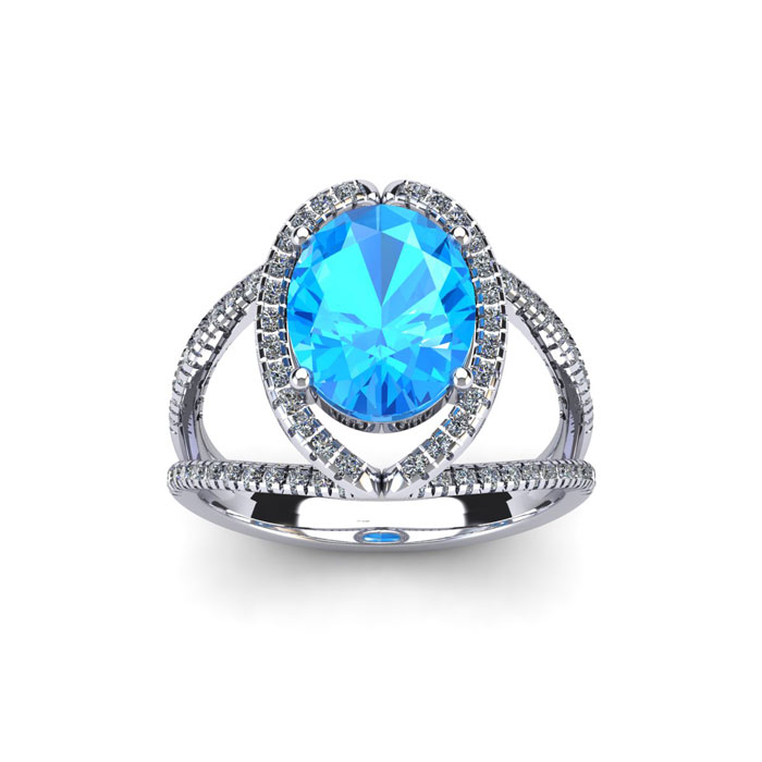 2 Carat Oval Shape Blue Topaz and Halo Diamond Ring In 14 Karat White Gold