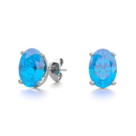 2 Carat Oval Shape Blue Topaz Stud Earrings In Sterling Silver