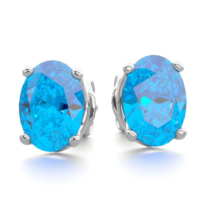 2 Carat Oval Shape Blue Topaz Stud Earrings In Sterling Silver