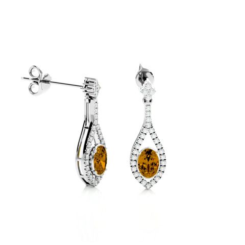2 Carat Oval Shape Citrine and Diamond Dangle Earrings In 14 Karat White Gold