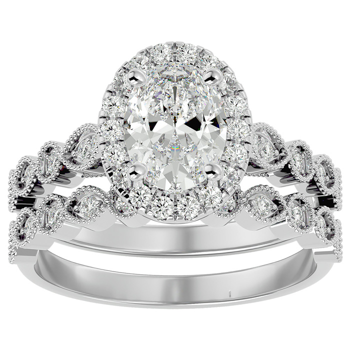 2 Carat Oval Shape Diamond Bridal Set In 14 Karat White Gold