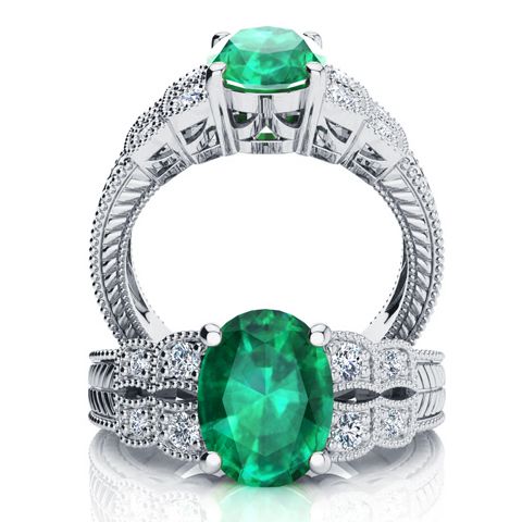 2 Carat Oval Shape Emerald and Diamond Ring In 10 Karat White Gold