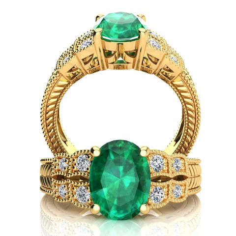 2 Carat Oval Shape Emerald and Diamond Ring In 10 Karat Yellow Gold
