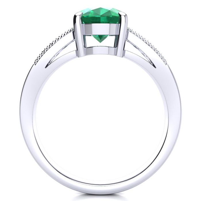 2 Carat Oval Shape Emerald and Diamond Ring In 14 Karat White Gold