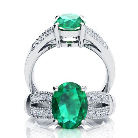 2 Carat Oval Shape Emerald and Diamond Ring In 14 Karat White Gold