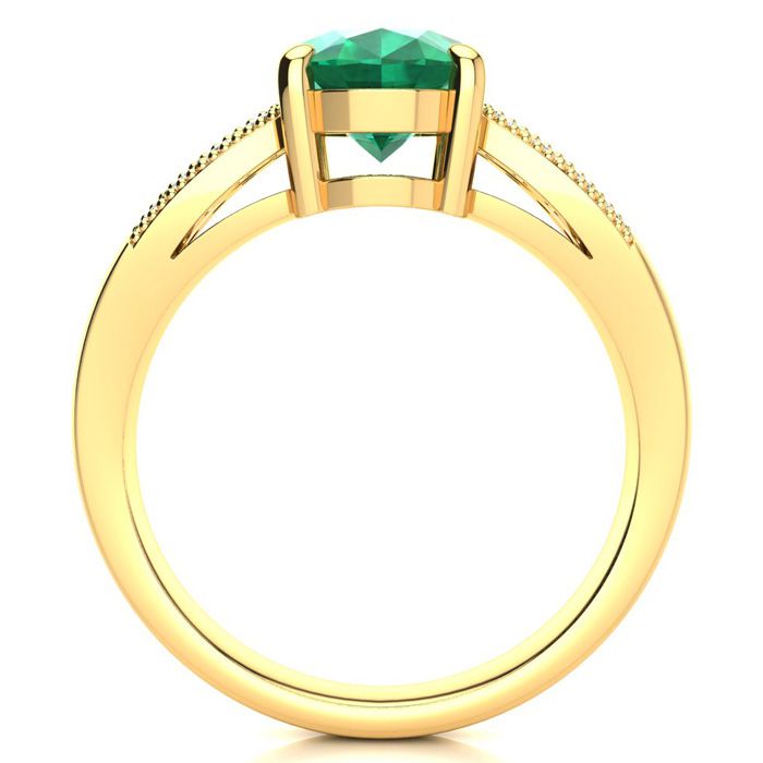 2 Carat Oval Shape Emerald and Diamond Ring In 14 Karat Yellow Gold