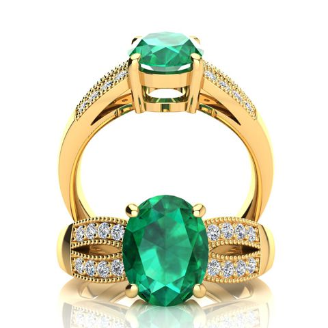 2 Carat Oval Shape Emerald and Diamond Ring In 14 Karat Yellow Gold