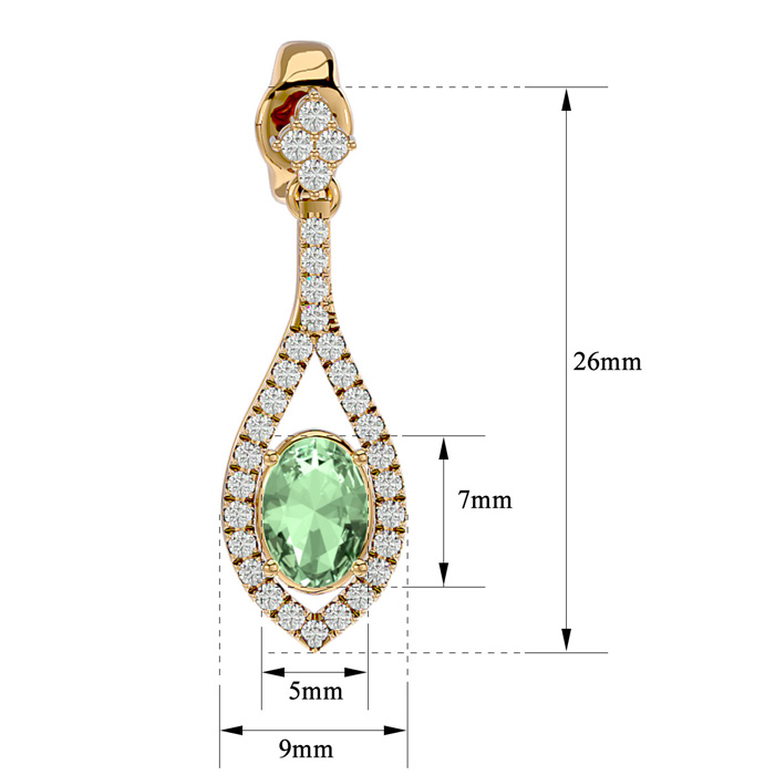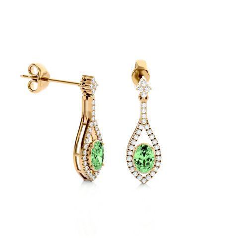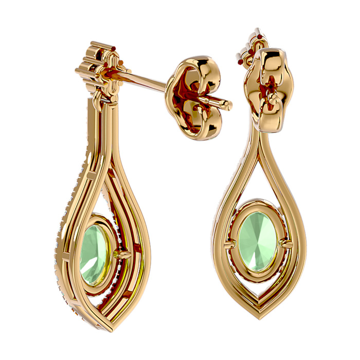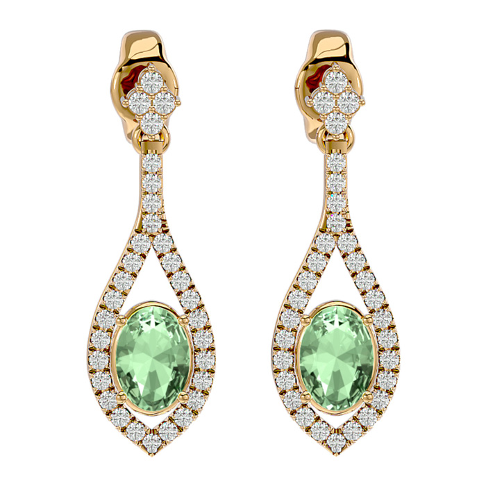 2 Carat Oval Shape Green Amethyst and Diamond Dangle Earrings In 14 Karat Yellow Gold