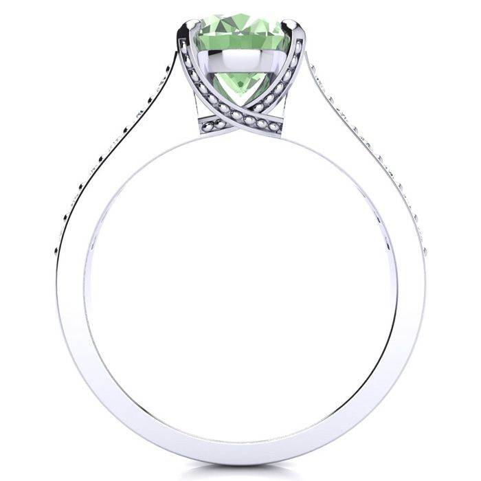 2 Carat Oval Shape Green Amethyst and Diamond Ring In 14 Karat White Gold