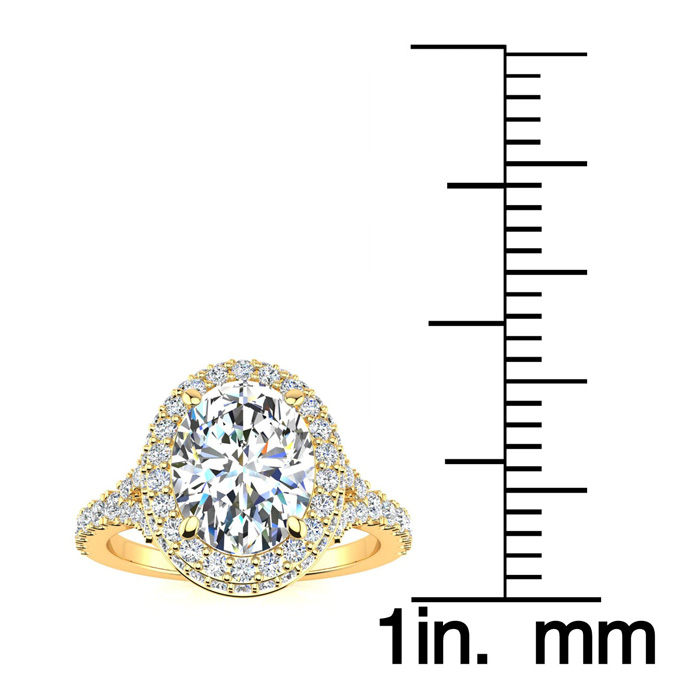 2 Carat Natural Oval Shape Halo Diamond Engagement Ring With 1 1/2 Carat Natural Center Diamond In 14K Yellow Gold