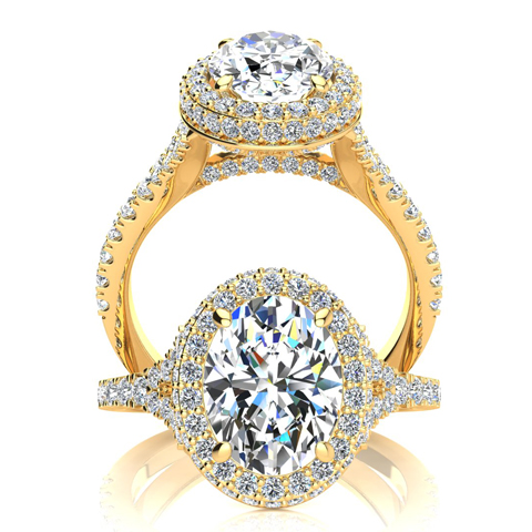2 Carat Natural Oval Shape Halo Diamond Engagement Ring With 1 1/2 Carat Natural Center Diamond In 14K Yellow Gold