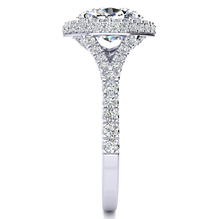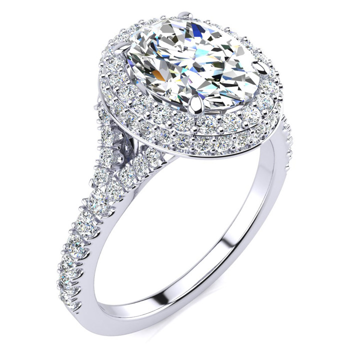 2 Carat Oval Shape Halo Lab Grown Diamond Engagement Ring With 1 1/2 Carat Center Lab Grown Diamond In 14K White Gold