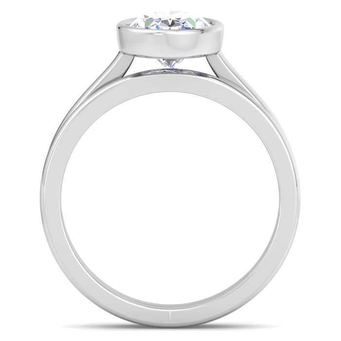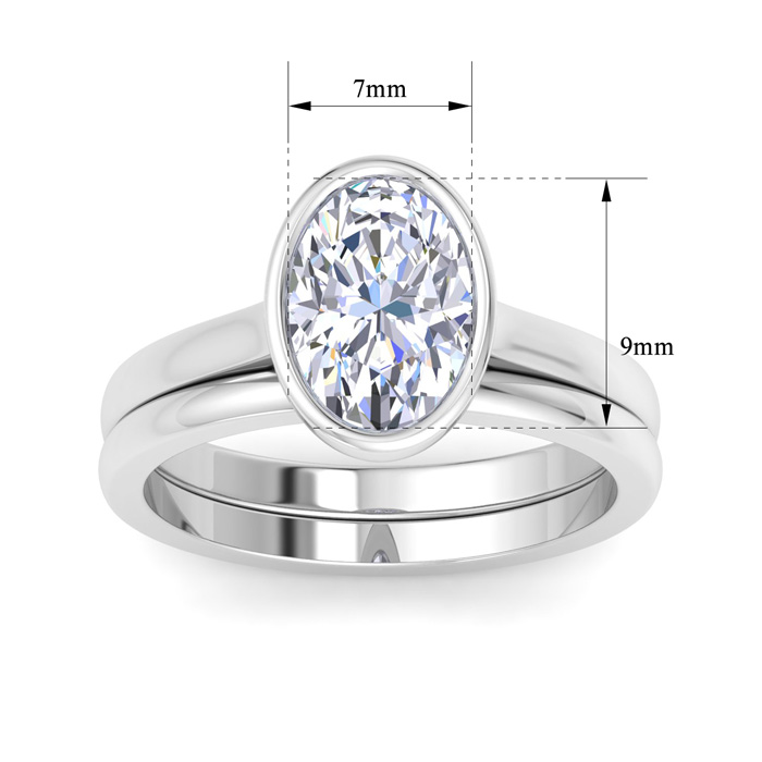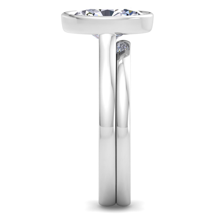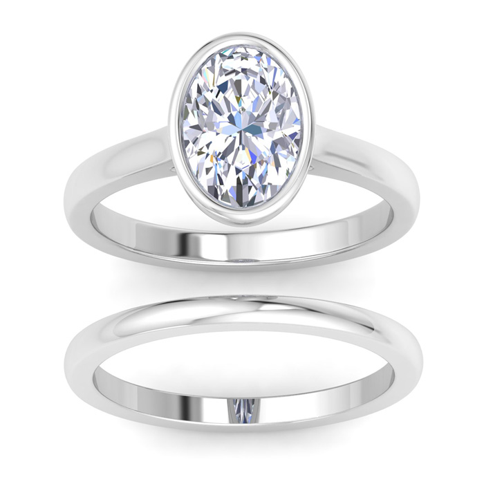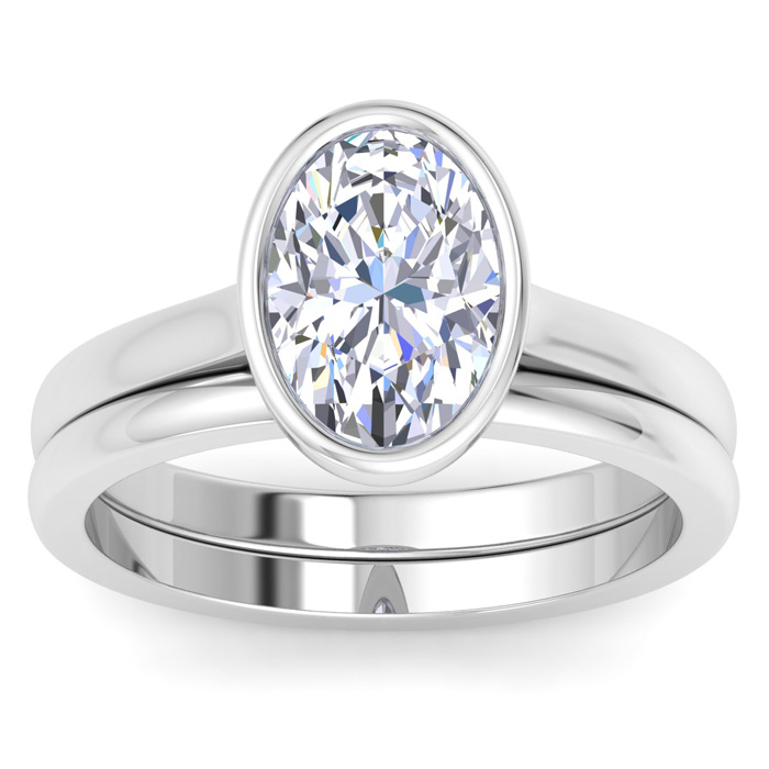 2 Carat Oval Shape Lab Grown Diamond Ring With Matching Band In 14K White Gold, Solitaire Bezel Setting
