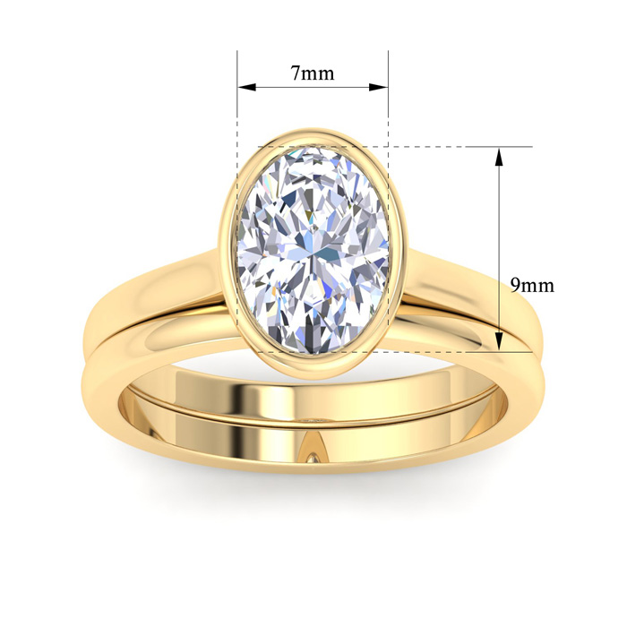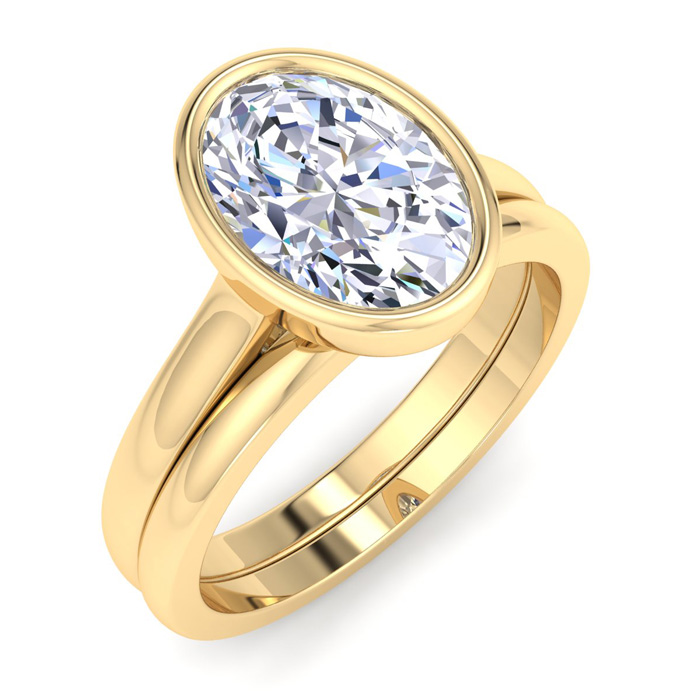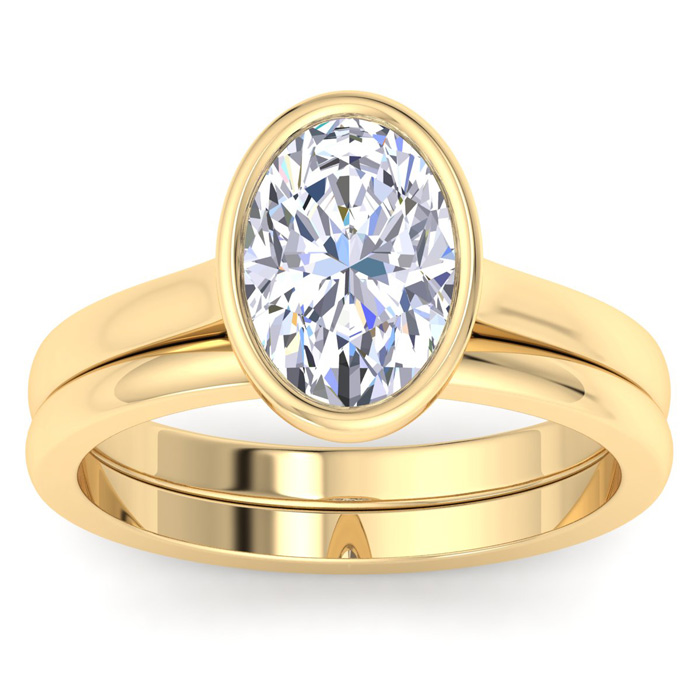 2 Carat Oval Shape Lab Grown Diamond Ring With Matching Band In 14K Yellow Gold, Solitaire Bezel Setting