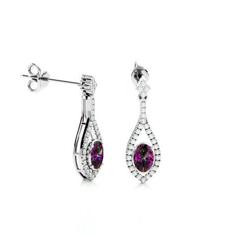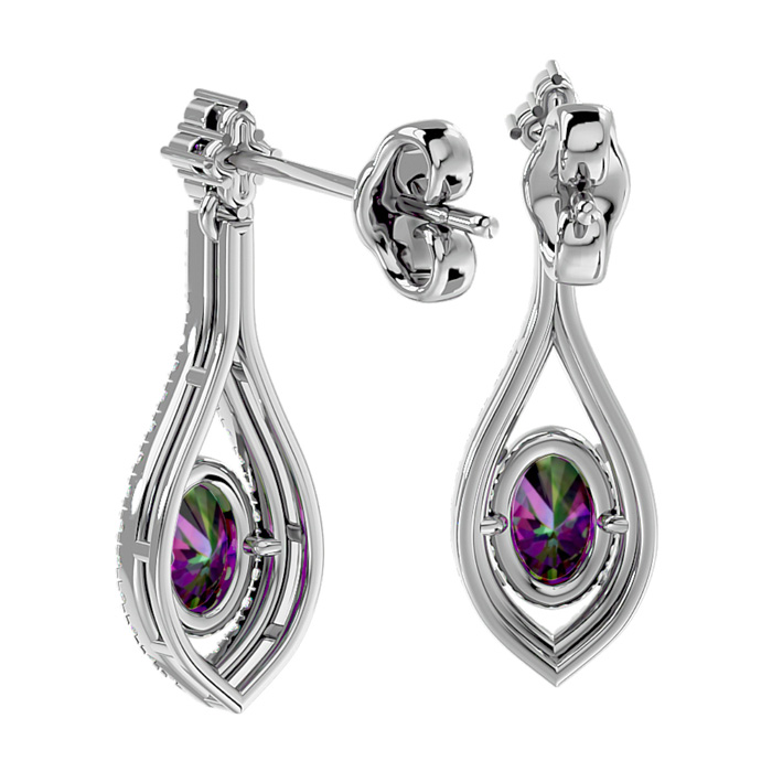 2 Carat Oval Shape Mystic Topaz and Diamond Dangle Earrings In 14 Karat White Gold
