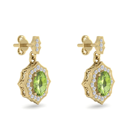 2 Carat Oval Shape Peridot and Diamond Dangle Earrings In 14 Karat Yellow Gold