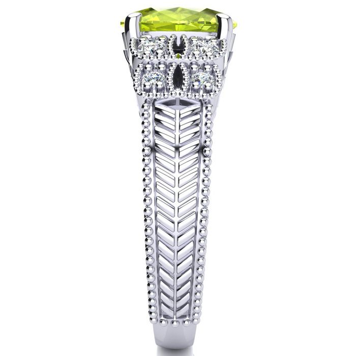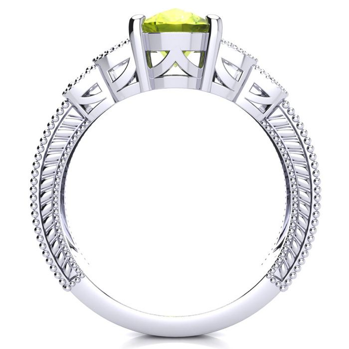 2 Carat Oval Shape Peridot and Diamond Ring In 10 Karat White Gold
