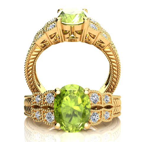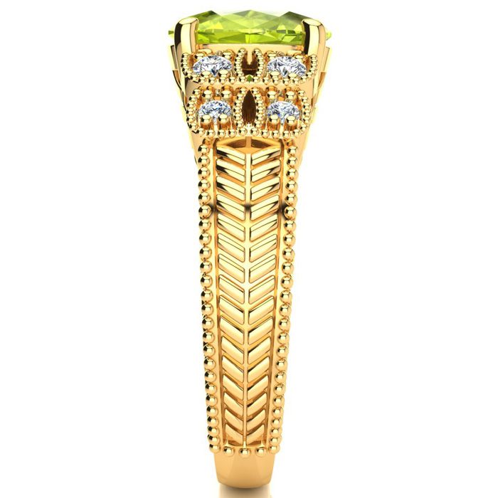 2 Carat Oval Shape Peridot and Diamond Ring In 10 Karat Yellow Gold